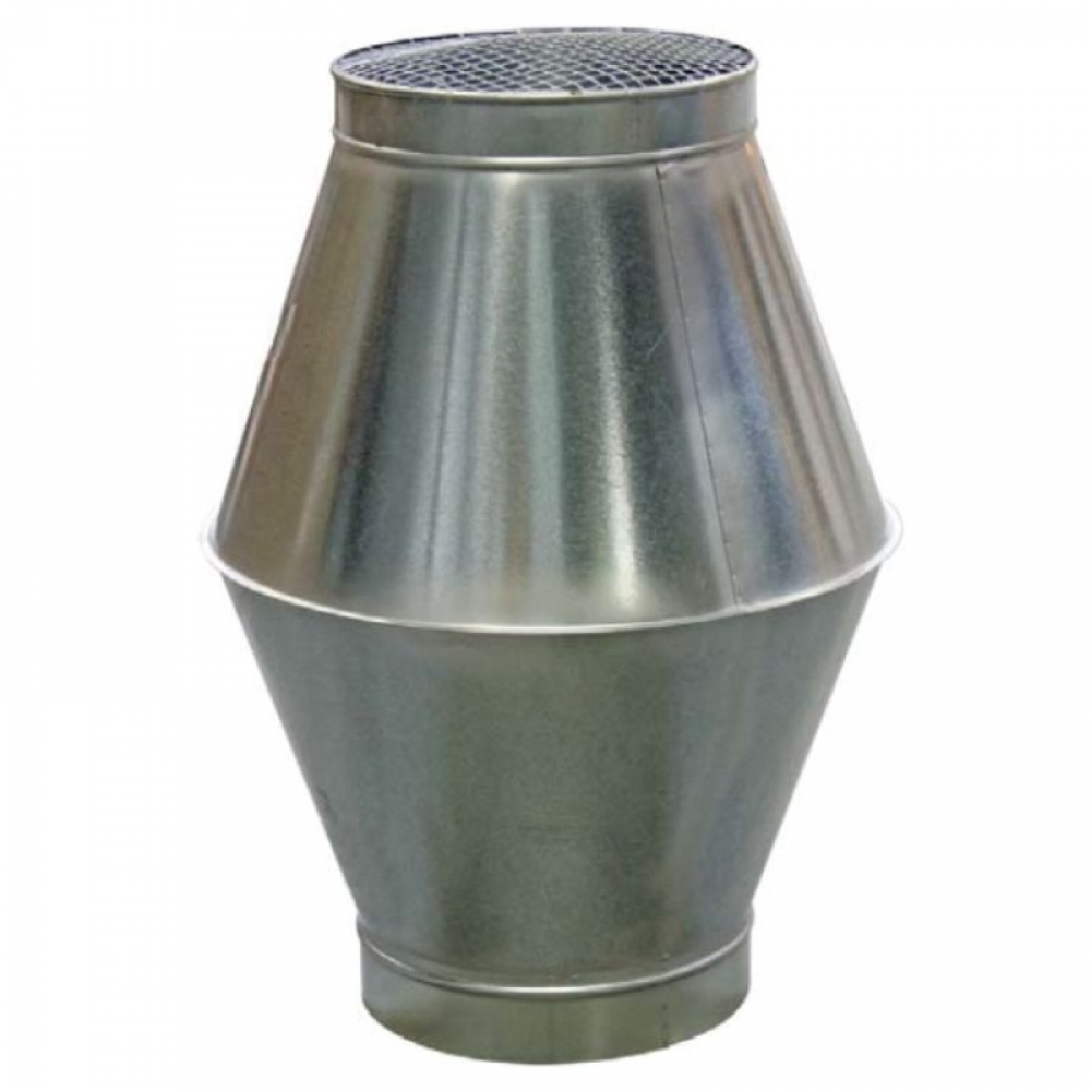 Betétkúpos kifúvófej függőleges kifúvással légcsatorna rendszerekhez horganyzott acélból, madárvédő hálóval. NA 100 mm.