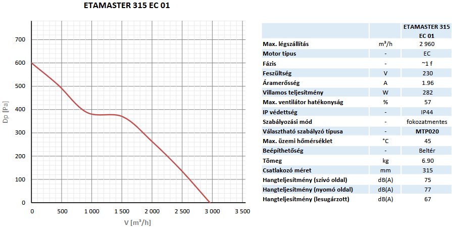 ETAMASTER EC 3-fokozatú félradiális csőventilátor EC motorral ; NA315 mm ; Két cső közé építhető, kompakt kialakítása és a súlycsökkentés hozzájárul a könnyű telepíthetőséghez ; A ház korrózió és időjárásálló bazaltszürke színű (RAL7012) ; A motor beépített hővédelemmel rendelkezik ; 3 sebességfokozatú meghajtómotor (230V~, 50Hz, 1f) ; Védelmi osztály (IPX4) ; "F" szigetelési osztály ;