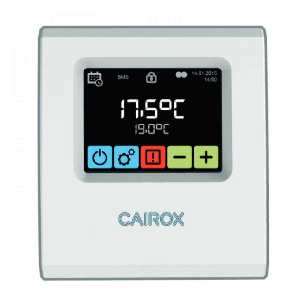 LCD kijelzős fali termosztát, fokozatmentes ventilátor fordulatszám szabályzással, fűtés-vezérléssel, termosztát-funkcióval, ajtónyitás érzékelő kapcsolattal, heti programozási lehetőséggel, BMS/épületfelügyeleti csatlakozási lehetőséggel. A készülék alkalmazható a DST rétegződésgátló ventilátorok vezérlésére is.