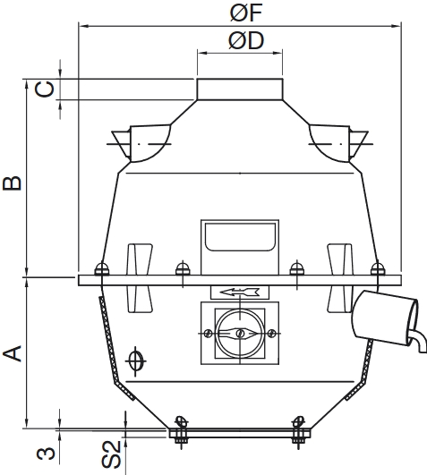 HF D saválló tetőventilátor ; Légszállítása 100 m³/h (100Pa) ; Agresszív gázok elszívására ; Vegyi fülkék, laboratóriumok és galvanizáló üzemek savfürdőinek elszívására ; A ház anyaga enyhén gyúlékony polietilén ; A járókerék fröccsöntött, műanyag (enyhén gyúlékony) ; A statikusan és dinamikusan kiegyensúlyozott járókerék ; Kalitkás forgórészű aszinkron motor (B5 típus) ; Védettség: IP55 ; "F" szigetelési osztály ;