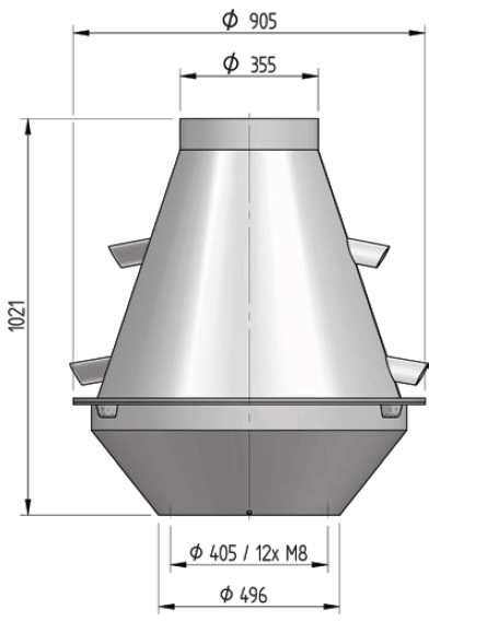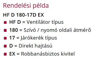 HF D Ex Saválló elszívó tetőventilátorok, robbanásbiztos kivitelben ; Légszállítása 600 m³/h (100Pa) ; Agresszív anyagot tartalmazó levegő és gázok elszívására alkalmas ; Direkt hajtású járókerék ; A ventilátoron a szállított közeg axiálisan áramlik keresztül ; A motor teljesen zárt (légáramon kívül helyezkedik el) ; A burkolata enyhén gyúlékony polietilénből készül ; Statikusan és dinamikusan kiegyensúlyozott járókerék ; Elektromos betáplálás (400V/3f) ; Súlya: 29 kg;