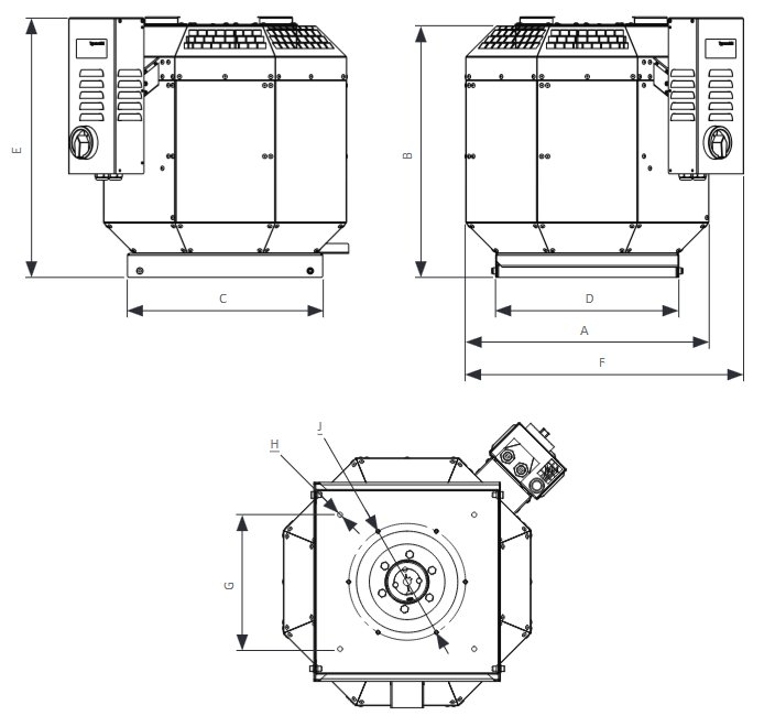 KRFI - SN hangszigetelt házas tetőventilátor, AC motorral felszerelve, nagykonyhai elszívó ernyőkhöz, maximum 120°C léghőmérsékletig. Maximális légszállítása 18580 m³/h. Külső burkolata tengervíz ellenálló alumínium. Hátrahajló lapátozású horganyzott acél járókerék. A járókerék statikusan és dinamikusan kiegyensúlyozott. 400V / 3fázisú elektromos betáplálás. "F" szigetelési osztály, IP44 védelem.