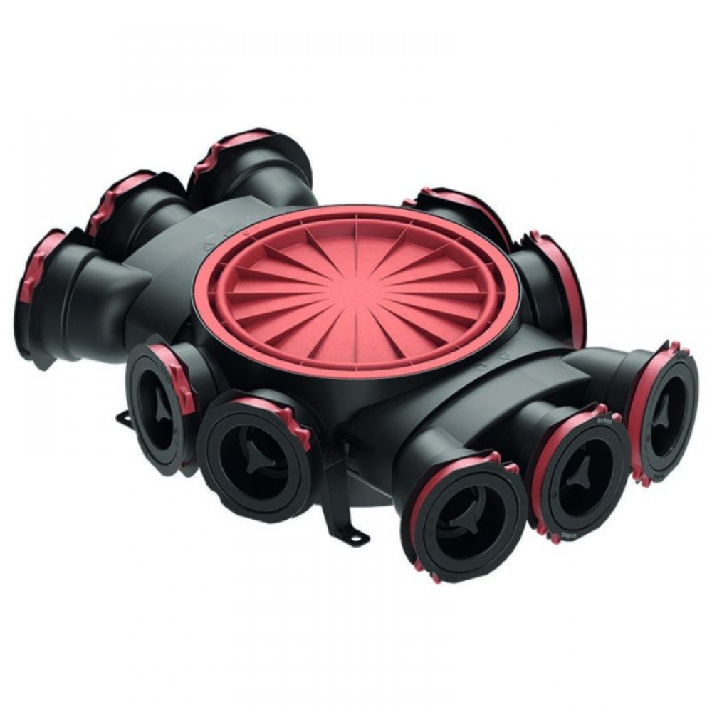 A csillagpontos lakásszellőztetés modul rendszerű osztódoboza. Anyaga kiváló minőségű, szennyeződésálló polipropilén. Egy modul felső csatlakozással 10, míg oldalsóval 7 db NA75 mm-es flexibilis cső csatlakozását teszi lehetővé. Egy rendszer telepítéshez minimum két osztódoboz használata szükséges (egy a befúvó- egy pedig az elszívó ágba),de alapmodulok egymáshoz csatlakoztatásával nagyobb méretű osztódobozok is tetszőlegesen kialakíthatók.