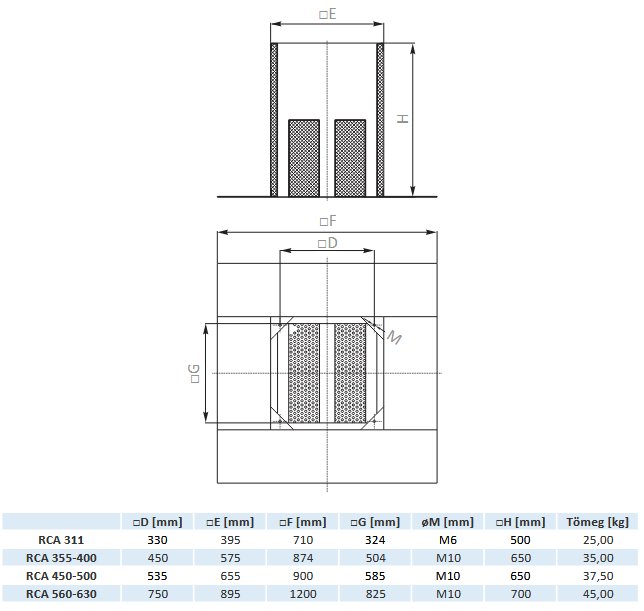 Szigetelt lábazati elem RFIS tetőventilátorokhoz, lapostetőkre történő elhelyezésre, horganyzott acélból, hangelnyelő anyaggal.