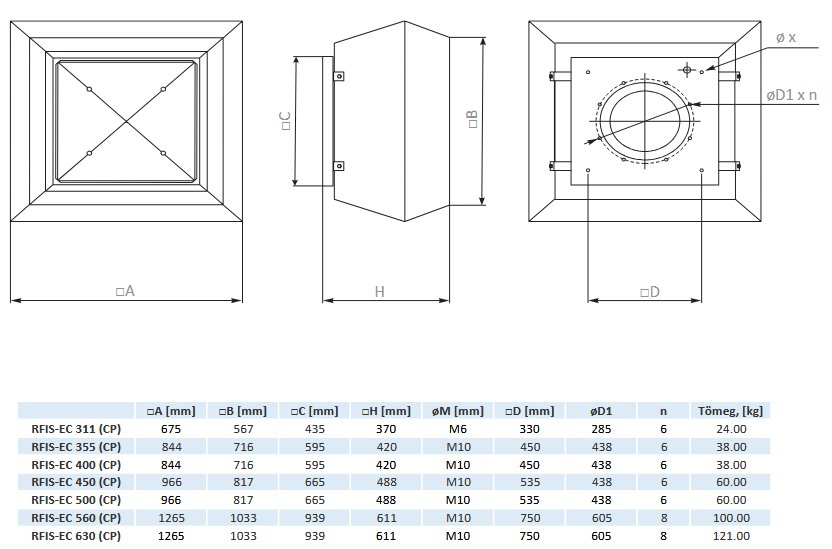 Függőleges kifúvású, EC-motorral felszerelt tetőventilátor, 400V / 3 fázisú elektromos betáplálással, 50 mm-es szigeteléssel ellátott alumínium házzal, IP54-es motor védelmi osztállyal, integrált motorvédelemmel, hátrahajló lapátozású lapátkerékkel, kültéri telepítésre. -23°C és +40°C közötti külső léghőmérséklet és +5°C és +40°C közötti elszívott léghőmérséklethez. Járókerék átmérője 500 mm.
