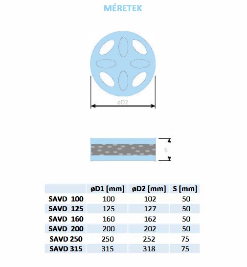 Kör keresztmetszetű, csőbe tolható állandó légmennyiség szabályzó és hangcsillapító, szellőző- és légkondicionáló rendszerekhez. Anyaga: "B" tűzállósági osztályú, anti-bakteriális gombaölő hatású rugalmas poliuretán hab. A kívánt légmennyiség / nyomás az áteresztő lyukak számának növelésével / csökkentésével könnyen beállítható.