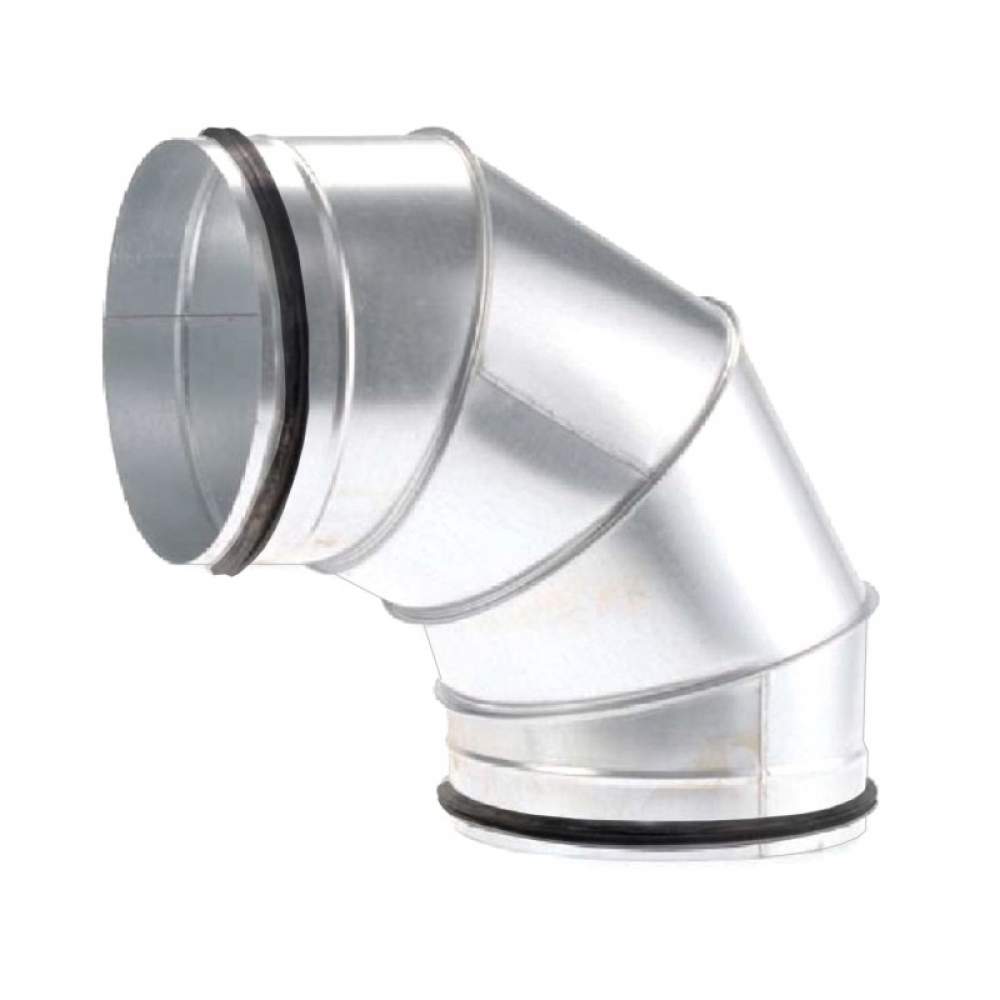 A 90°-os légtechnikai könyökidom 0,5 mm lemezvastagságú, 1.4404 anyagminőségű saválló acéllemezből készített, préselt, vagy szeletes kialakítású légtechnikai idom, NA80 és NA800 mm-es légtechnikai átmérőben, gumitömítéssel. Az idomok kialakítása NA80 - 100 és 125 mm átmérőnél ponthegesztéssel, az e feletti méreteknél az egyenes lemeztalálkozásoknál AVI vonalhegesztéssel, az íves részeknél korcolással történik. Nem raktárkészleti termék, kérésre egyedi árajánlatot adunk (lásd lentebb).