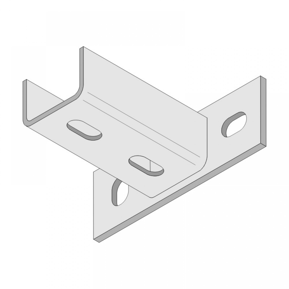 Mérete: 144 x 68 x 6 mm-es talpra hegesztett 100 x 49 x 3 mm-es hajlított tartóelem, az ábra szerinti furatokkal. A 41/21-es és 41/41-es szerelősínekhez, keresztirányú tájolású síntartó. Anyaga: galvanikusan horganyzott acél.