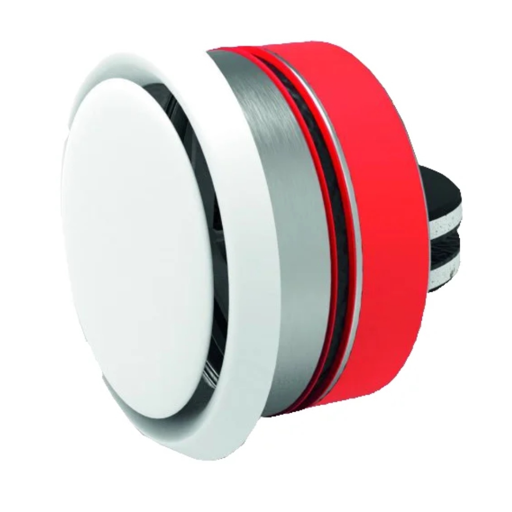 Befúvásra és elszívásra is alkalmas, plafonon, vagy oldalfalon is elhelyezhető tűzvédelmi légszelep, tűzszakasz határra, a falsíkig átnyúló, kör keresztmetszetű fém légcsatornába tolható kivitelben, 72 Celsius fokos termikus kioldó elemmel, 90 perc (EI90S) tűzállósággal.