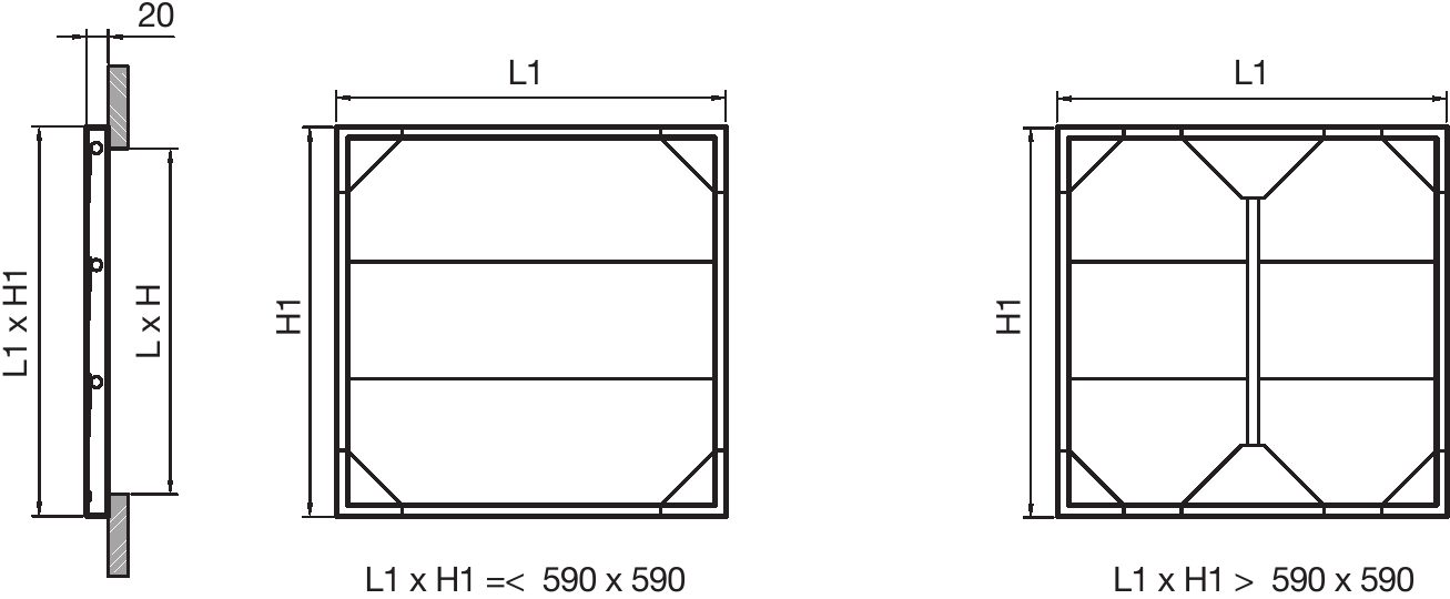 Négyzet alakú, festett alumínium keretes, PVC lamellás túlnyomás kibocsátó (gravitációs) zsalu levegő elszívására. Sík felületre szerelhető, a lamellái alapállásban zártak, túlnyomásra nyitódnak (lásd lentebb).